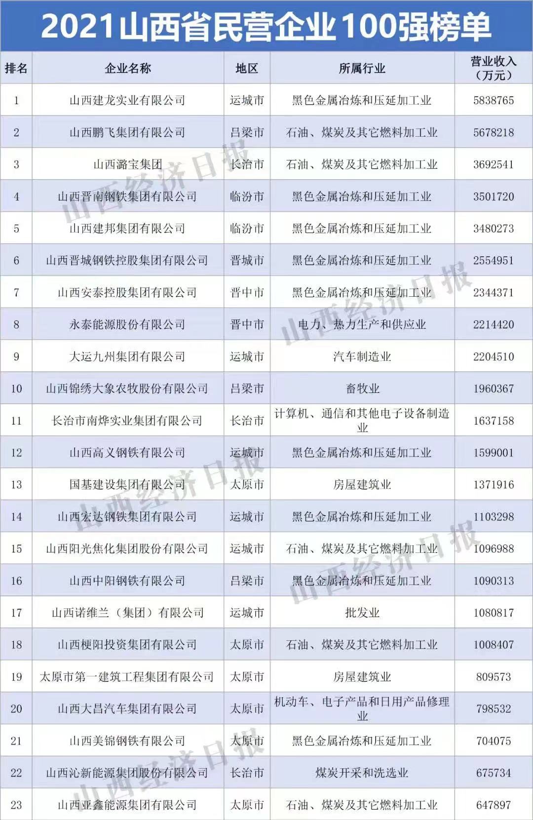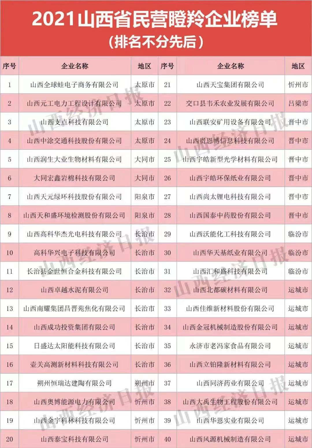 10月15日,由山西省工商聯(lián)主辦,省工信廳、省財(cái)政廳、省市場(chǎng)監(jiān)管局等支持的“2021山西省民營(yíng)企業(yè)100強(qiáng)發(fā)布會(huì)”在太原舉行。會(huì)議發(fā)布“2021山西省民營(yíng)企業(yè)100強(qiáng)”、“2021山西省民營(yíng)企業(yè)制造業(yè)30強(qiáng)”、“2021山西省民營(yíng)企業(yè)服務(wù)業(yè)20強(qiáng)”、“2021山西省最具潛力民營(yíng)企業(yè)”系列榜單及《2021山西民營(yíng)企業(yè)100強(qiáng)調(diào)研分析報(bào)告》。首次發(fā)布“2021山西省民營(yíng)準(zhǔn)獨(dú)角獸企業(yè)”、“2021山西省民營(yíng)瞪羚企業(yè)”榜單。
