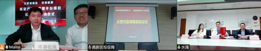 4月18日,安徽省合肥高新區(qū)與祥睿能源就碳資產(chǎn)運(yùn)營(yíng)管理平臺(tái)項(xiàng)目達(dá)成深度合作,并通過(guò)線上云簽約的方式,舉行啟動(dòng)儀式。合肥高新區(qū)投資促進(jìn)局副局長(zhǎng)陳利軍、新興產(chǎn)業(yè)處處長(zhǎng)何志強(qiáng)、生態(tài)環(huán)境分局副局長(zhǎng)黃兆麗,祥睿能源董事長(zhǎng)王正通、總裁楊新宇、總工程師孫大偉、低碳云中心總經(jīng)理尉言等出席儀式。