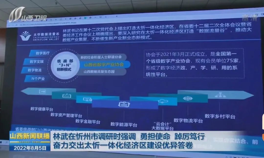 8月3日,林武首先來(lái)到太忻數(shù)據(jù)流量谷,聽(tīng)取規(guī)劃建設(shè)、平臺(tái)服務(wù)、招商引資等情況介紹,與華為、百度、時(shí)光軸、祥睿能源等入園企業(yè)項(xiàng)目負(fù)責(zé)人交流。省工商聯(lián)副主席、祥睿能源董事長(zhǎng)王正通代表山西數(shù)字產(chǎn)業(yè)協(xié)會(huì),就太忻數(shù)據(jù)流量谷三大建設(shè)思路向林武書(shū)記進(jìn)行了匯報(bào):一是迅速匯集,打造“7+N”數(shù)據(jù)平臺(tái)和數(shù)據(jù)產(chǎn)業(yè)鏈體系;二是虛實(shí)結(jié)合,通過(guò)數(shù)字化、綠色化產(chǎn)業(yè)平臺(tái)帶動(dòng)高端裝備制造業(yè)形成前輕后重的太忻模式;三是通過(guò)數(shù)據(jù)流量谷形成賦能山西傳統(tǒng)產(chǎn)業(yè)轉(zhuǎn)型的生態(tài)體系。
