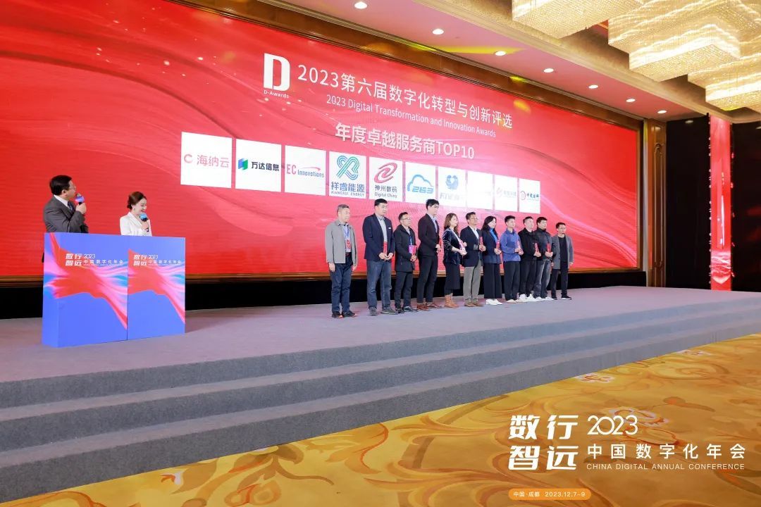 12月7日,以“數(shù)行智遠(yuǎn)”為主題的2023中國(guó)數(shù)字化年會(huì)在成都召開,作為年會(huì)的重要環(huán)節(jié),備受業(yè)界關(guān)注的“2023第六屆數(shù)字化轉(zhuǎn)型與創(chuàng)新評(píng)選”頒獎(jiǎng)典禮于12月8日隆重舉行,數(shù)百家獲獎(jiǎng)企業(yè)代表與業(yè)界嘉賓齊聚一堂,共同見證了數(shù)字化轉(zhuǎn)型為企業(yè)帶來的蛻變,正式揭曉了獲獎(jiǎng)榜單!祥睿能源憑借其在數(shù)字化轉(zhuǎn)型方面的卓越表現(xiàn)和創(chuàng)新能力,成為“2023年度卓越服務(wù)商TOP10”。