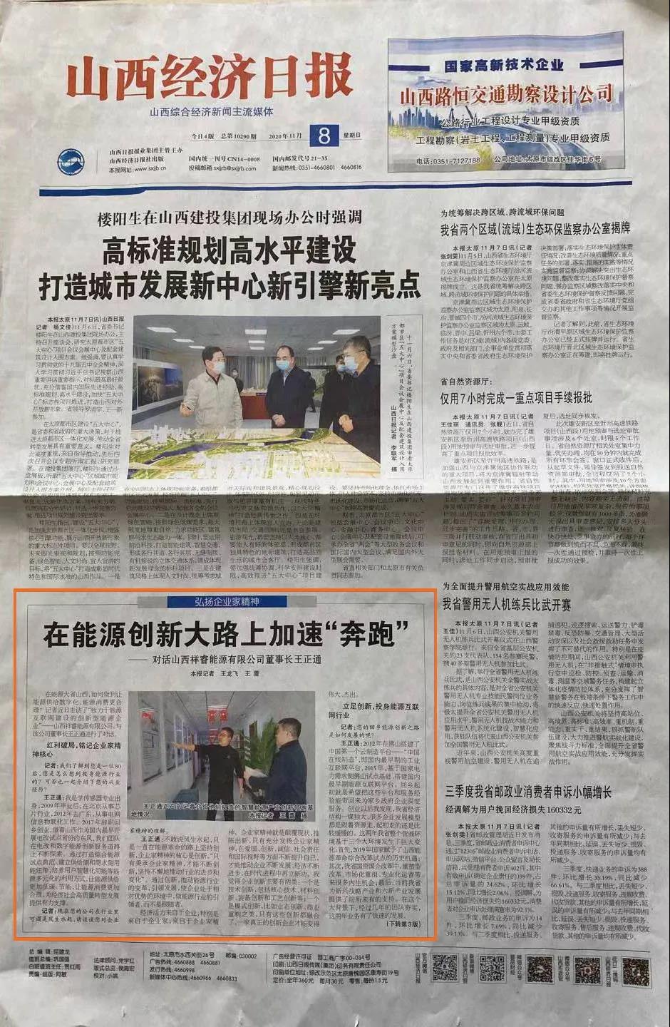 2020年11月8日《山西經(jīng)濟日報》晉周刊專欄,就祥睿能源董事長王正通與記者的對話進行了專題報道,淺談如何弘揚企業(yè)家精神。 企業(yè)家是企業(yè)的統(tǒng)帥和靈魂,也是改革創(chuàng)新的重要力量。習近平總書記指出:“我們?nèi)嫔罨母?,就要激發(fā)市場蘊藏的活力。市場活力來自于人,特別是來自于企業(yè)家,來自于企業(yè)家精神?!弊鳛槠髽I(yè)家,要運用創(chuàng)新意識和創(chuàng)新能力,能注意到別人忽略的問題,想到他人沒有想或不敢想的問題,抓住時機,出奇制勝。無論是管理創(chuàng)新、產(chǎn)品創(chuàng)新、服務(wù)創(chuàng)新還是技術(shù)創(chuàng)新,本身就充滿著市場和技術(shù)的不確定性,需要企業(yè)家有膽識、有魄力,敢于擔當。面對經(jīng)濟發(fā)展新常態(tài),更需要發(fā)揚企業(yè)家精神,以更大的決心、更大的勇氣參與市場競爭,引領(lǐng)企業(yè)激發(fā)創(chuàng)新改革活力。