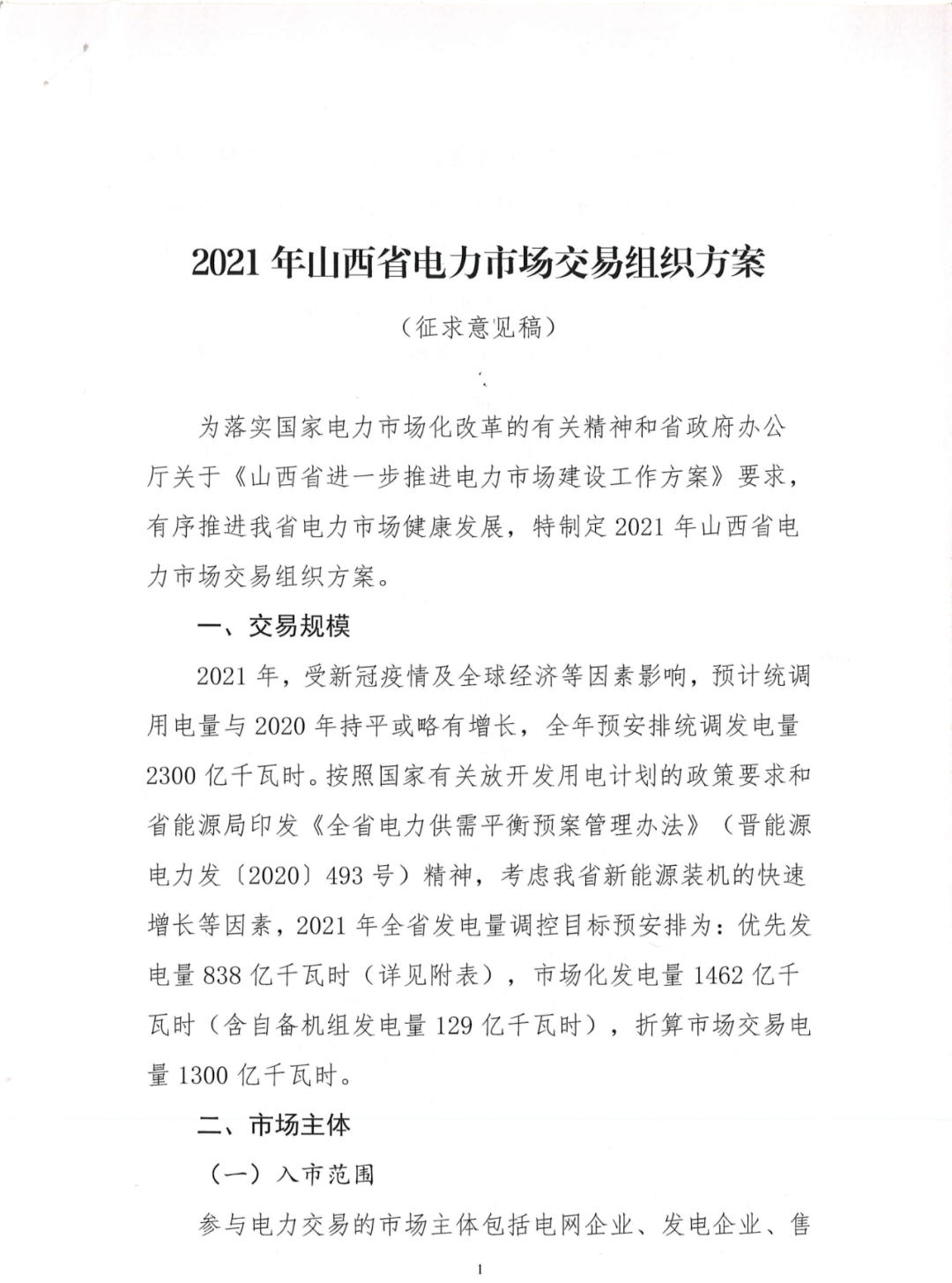| 山西確定2021年市場(chǎng)交易電量1300億千瓦時(shí) 取消雙邊交易 |
