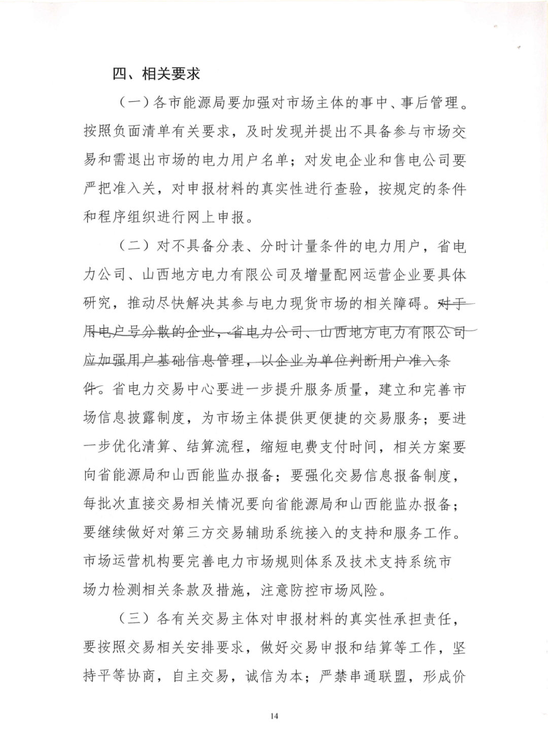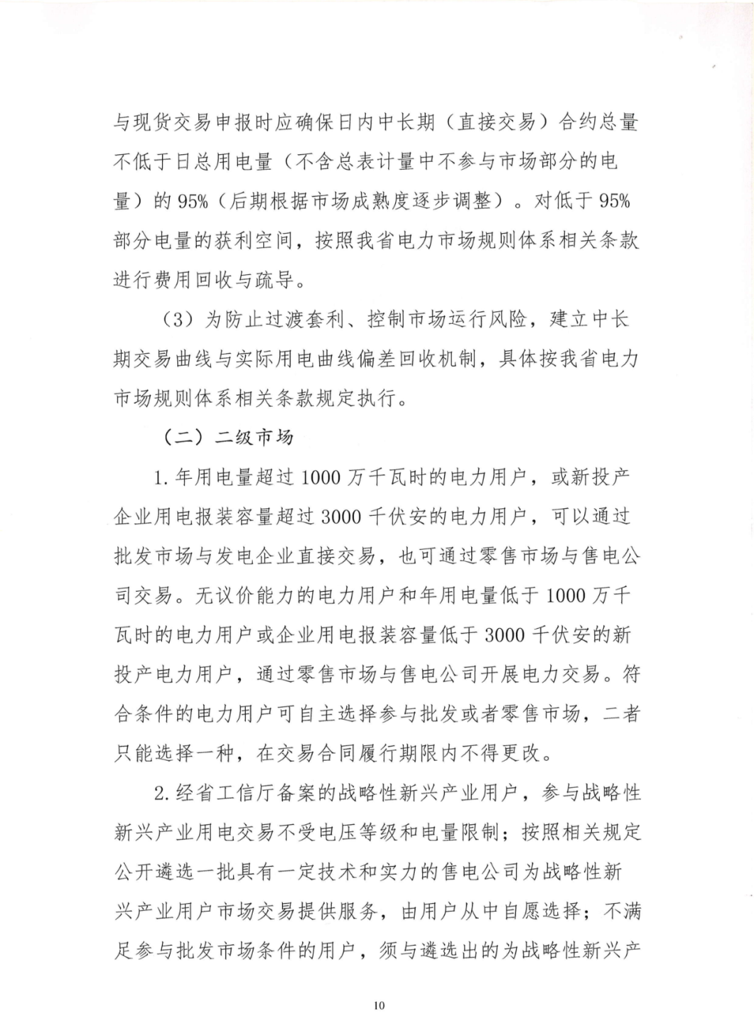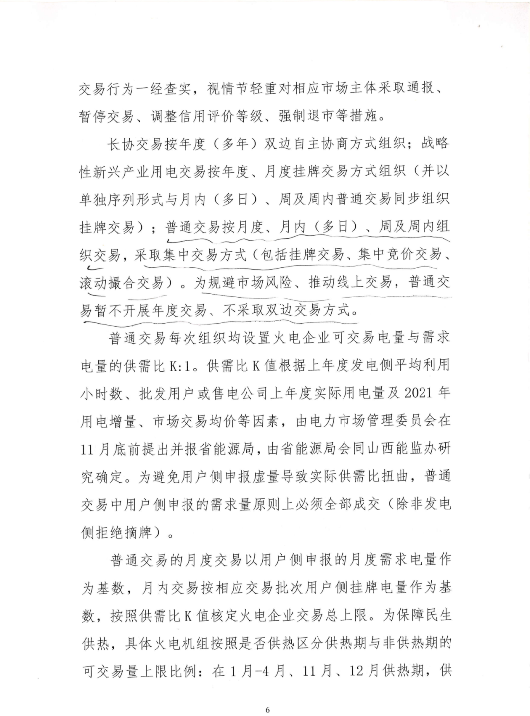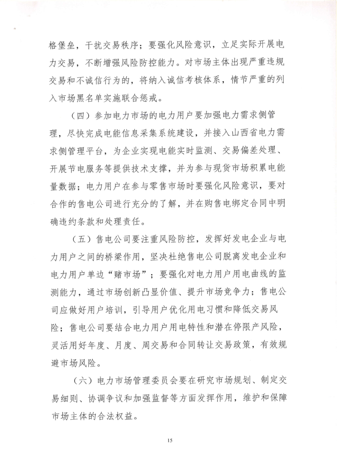 山西近期出臺(tái)《2021年山西省電力市場(chǎng)交易組織方案(征求意見(jiàn)稿)》。其中稱(chēng)為規(guī)避市場(chǎng)風(fēng)險(xiǎn)、推動(dòng)線上交易,普通交易暫不開(kāi)展年度交易、不采取雙邊交易方式。有人反映:取消雙邊交易對(duì)明年的市場(chǎng)影響非常大,售電公司可能面臨毀約的風(fēng)險(xiǎn)。 2021年山西省發(fā)電量調(diào)控目標(biāo)預(yù)安排為∶優(yōu)先發(fā)電量838億千瓦時(shí),市場(chǎng)化發(fā)電量1462億千瓦時(shí)(含自備機(jī)組發(fā)電量129億千瓦時(shí)),折算市場(chǎng)交易電量1300億千瓦時(shí)。 電力用戶(hù)∶除居民、農(nóng)業(yè)、重要公用事業(yè)和公益性服務(wù)等行業(yè)電力用戶(hù)以及電力生產(chǎn)供應(yīng)所必需的廠用電和線損之外,逐步全面放開(kāi)經(jīng)營(yíng)性領(lǐng)域電力用戶(hù)參與市場(chǎng)交易。供氣、供熱、供水、污水處理等公用事業(yè)用戶(hù)自愿申請(qǐng)參與市場(chǎng)交易,應(yīng)向省電力交易中心提供市場(chǎng)風(fēng)險(xiǎn)自擔(dān)承諾書(shū)。 執(zhí)行大工業(yè)用電的電力用戶(hù)不受電壓等級(jí)和電量限制;執(zhí)行一般工商業(yè)用電的電力用戶(hù)不受電壓等級(jí)限制,但上年度(2019年11 月-2020年10月)用電量要在500萬(wàn)千瓦時(shí)以上(果品冷藏用電和電信基站用電除外),或新投產(chǎn)企業(yè)用電報(bào)裝容量要在1500千伏安以上;支持14個(gè)戰(zhàn)略性新興產(chǎn)業(yè)和出口加工貿(mào)易類(lèi)企業(yè)、"煤改電"交易電量全電量參與市場(chǎng)交易,不受電壓等級(jí)和電量限制;支持增量配電網(wǎng)試點(diǎn)參與市場(chǎng)交易,擁有配電網(wǎng)運(yùn)營(yíng)權(quán)的售電公司、區(qū)域內(nèi)電力用戶(hù)以打包形式全電量參與市場(chǎng)交易,不受電壓等級(jí)和電量限制。 山西電力交易中心月前組織售電公司及零售用戶(hù)綁定結(jié)算方案,對(duì)于可能出現(xiàn)的批零價(jià)格倒掛情況,售電公司需按合同電量全額現(xiàn)金繳納差額費(fèi)用,未完成繳納的,將暫停售電公司批零兩級(jí)市場(chǎng)合同執(zhí)行,具體按相關(guān)規(guī)則執(zhí)行。暫停合同后的結(jié)算原則。 詳情如下: