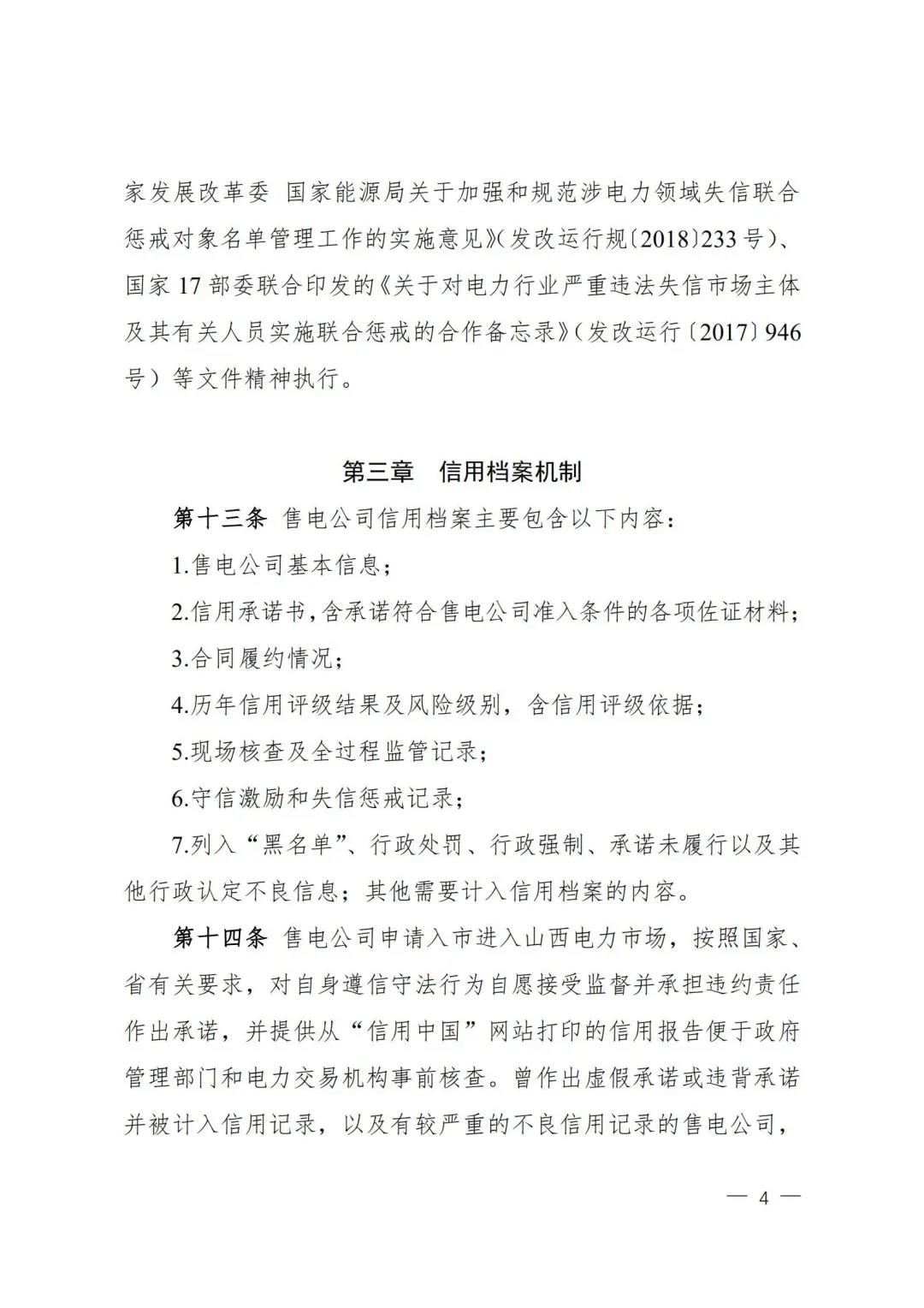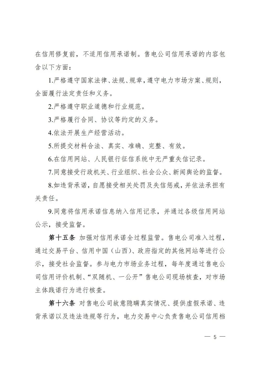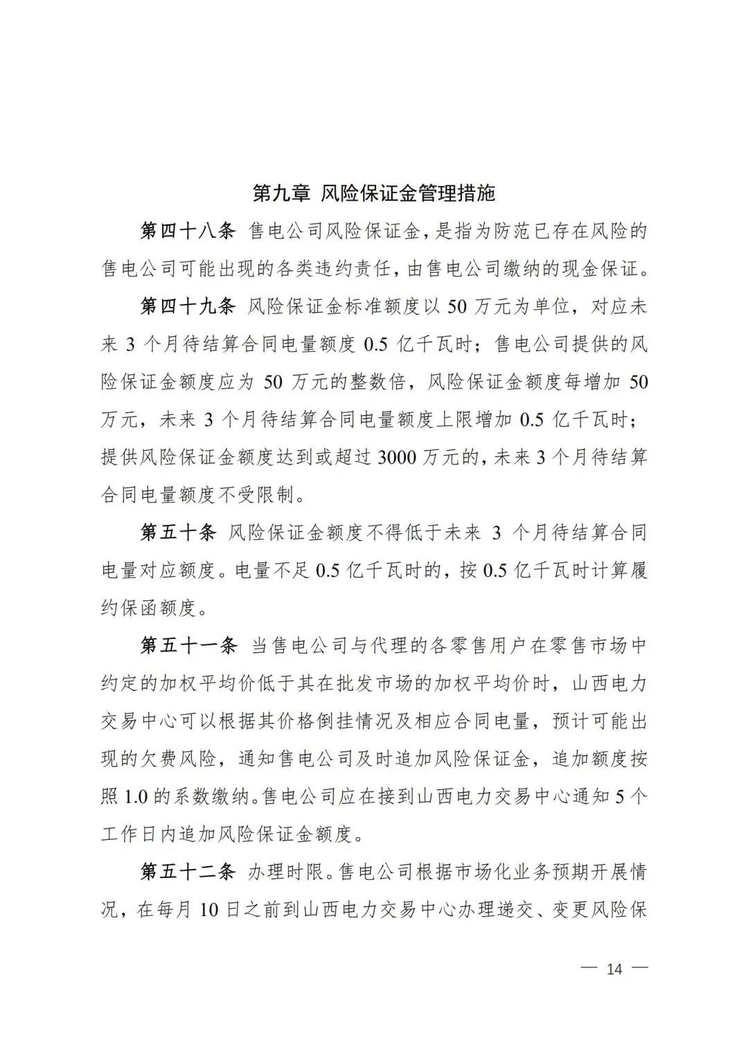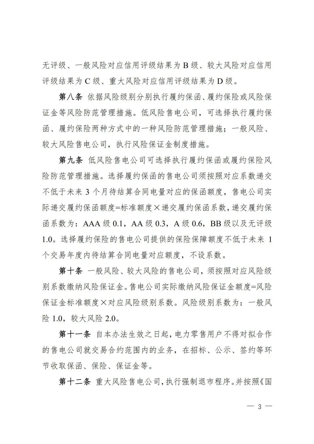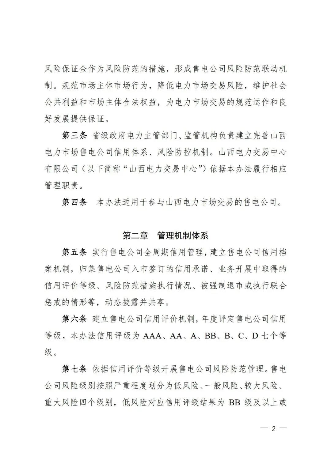 | 山西電力市場售電公司信用評價與風(fēng)險防范管理辦法:依據(jù)風(fēng)險級別執(zhí)行履約保函、保險或風(fēng)險保證金措施 |