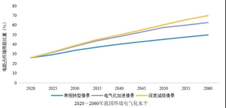 今年9月22日,習(xí)近平主席在第七十五屆聯(lián)合國大會(huì)一般性辯論上發(fā)表重要講話,表示我國二氧化碳排放力爭于2030年前達(dá)到峰值,努力爭取2060年前實(shí)現(xiàn)碳中和。這為我國應(yīng)對(duì)氣候變化、加快能源轉(zhuǎn)型提供了方向指引,也為構(gòu)建面向未來的能源互聯(lián)網(wǎng)提供了新契機(jī)。 國網(wǎng)能源院在會(huì)上發(fā)布的《中國能源電力發(fā)展展望2020》顯示,近期,電力系統(tǒng)通過電能替代方式承擔(dān)更大的碳減排責(zé)任。隨著2030年后清潔能源快速發(fā)展并成為發(fā)電能源主體,煤電應(yīng)用碳捕獲、利用與封存技術(shù)(CCUS),電力系統(tǒng)碳排放量快速下降,2060年電力有望實(shí)現(xiàn)近零排放。屆時(shí),電能占終端能源消費(fèi)比重、非化石能源占一次能源消費(fèi)比重分別有望達(dá)到70%、80%,電力將在能源深度碳減排中發(fā)揮關(guān)鍵作用。