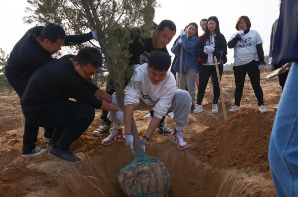 此次植樹活動(dòng)現(xiàn)場(chǎng)熱火朝天,大家分工合作、配合默契,干勁十足,扶苗、對(duì)齊,培土、踩實(shí),澆水.....每道工序都一絲不茍。